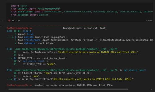 LLMのファインチューニングを高速化できるライブラリ「Unsloth」。早速使ってみようとJupyter Notebookでimportを実行したところ、無情にもエラーが...。 NotImplementedError: Unsloth currently only works on NVIDIA GPUs and Intel GPUs. 「NVIDIA GPUを…
